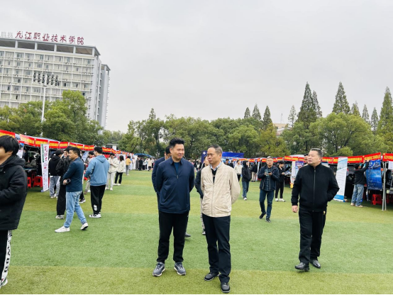 九职新闻网讯(招生就业处)为深入贯彻落实党中央、国务院和省委省政府关于做好高校毕业生就业工作决策部署,积极搭建用人单位与毕业生沟通交流平台,促进毕业生更高质量充分就业。11月11日,由江西省教育厅、江西省人力资源和社会保障厅指导,九江职业技术学院、江西省就业创业服务中心承办的2024届高校毕业生九江区域专场就业招聘会暨九江职业技术学院2024届毕业生校园系列综合招聘会在我校十里校区田径场成功举行。校长曾青生来到招聘会现场与企业亲切交谈并提出工作要求,省就业创业服务中心公共服务处副处长安光代表省就创中心来到招聘会现场指导工作。