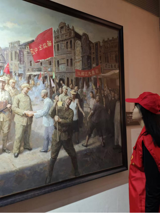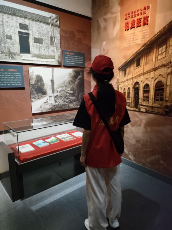 活动中,同学们身着志愿装,怀着崇敬的心情踏入这片承载着厚重历史的土地。一幅幅珍贵的照片、一件件斑驳的实物,无声地讲述着中国共产党从星星之火到燎原之势的壮阔历程。协会的成员们还主动承担起向导的角色,为前来参观的其他游客提供解说服务,这种实践,让红色教育的意义得到了进一步的升华。