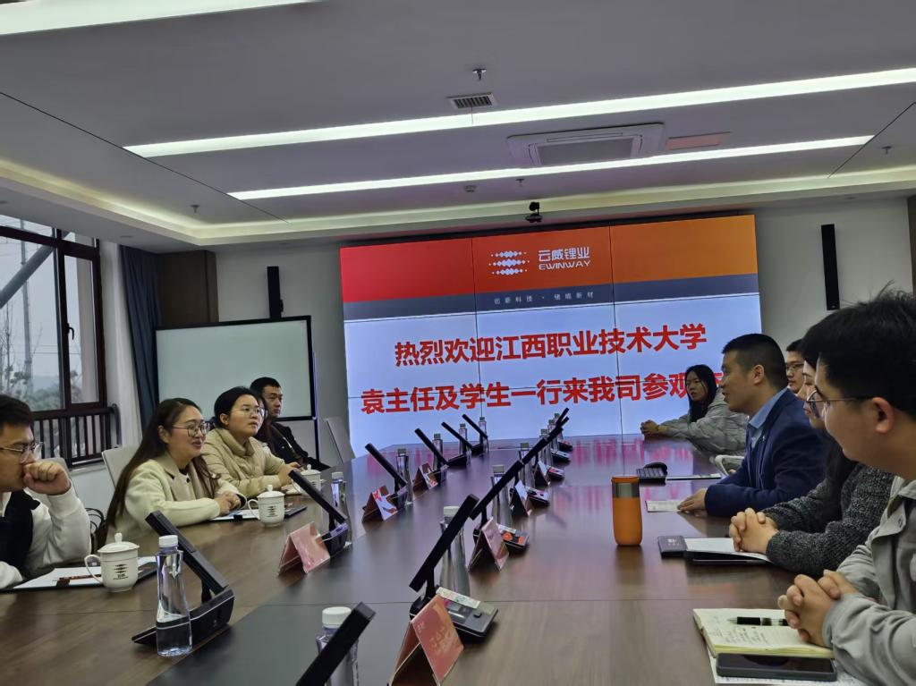 九江云威锂业有限公司石总对学校师生的到来表示热烈欢迎,并详细介绍了公司的发展历程、生产产品及未来发展计划。