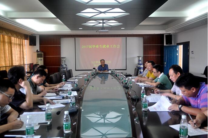 九江职院新闻网讯(招生就业处 刘浩 罗应棉)7月7日下午,我校2017届毕业生就业工作会在3号教学楼12楼会议室召开。校长魏寒柏出席会议,副校长刘南平主持会议,各二级学院党总支书记、分管学生工作副院长、就业干事,学工处、团委主要领导,招就处全体成员参加了此次会议。