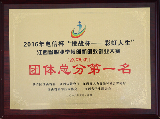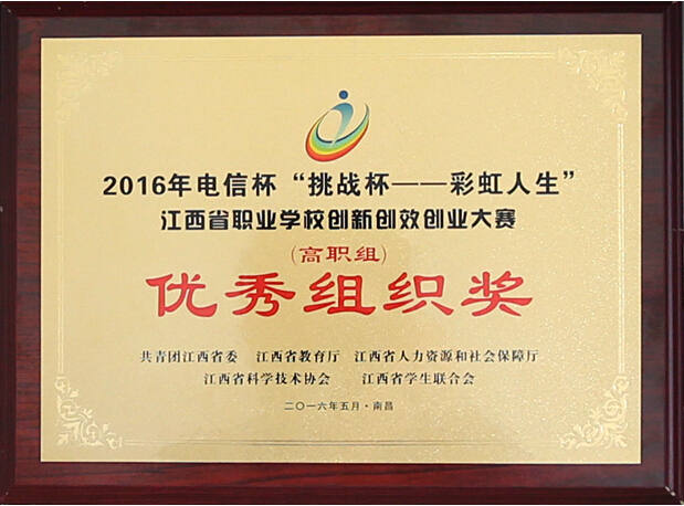 5月15至16日,2016年电信杯“挑战杯——彩虹人生”江西省职业学校创新创效创业大赛终审决赛在江西外语外贸职业学院举行。我校荣获高职组团体总分第一名和大赛优秀组织奖的优异成绩。