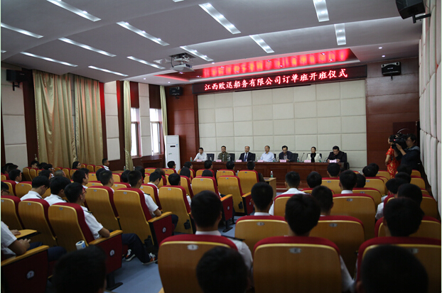 江西欧迅船务有限公司总经理李小明代表企业对加入订单班的学生表示欢迎,他介绍了企业的发展状况,并对我校学生给予高度评价,对同学们加入江西欧迅船务有限公司的发展前景进行了展望。