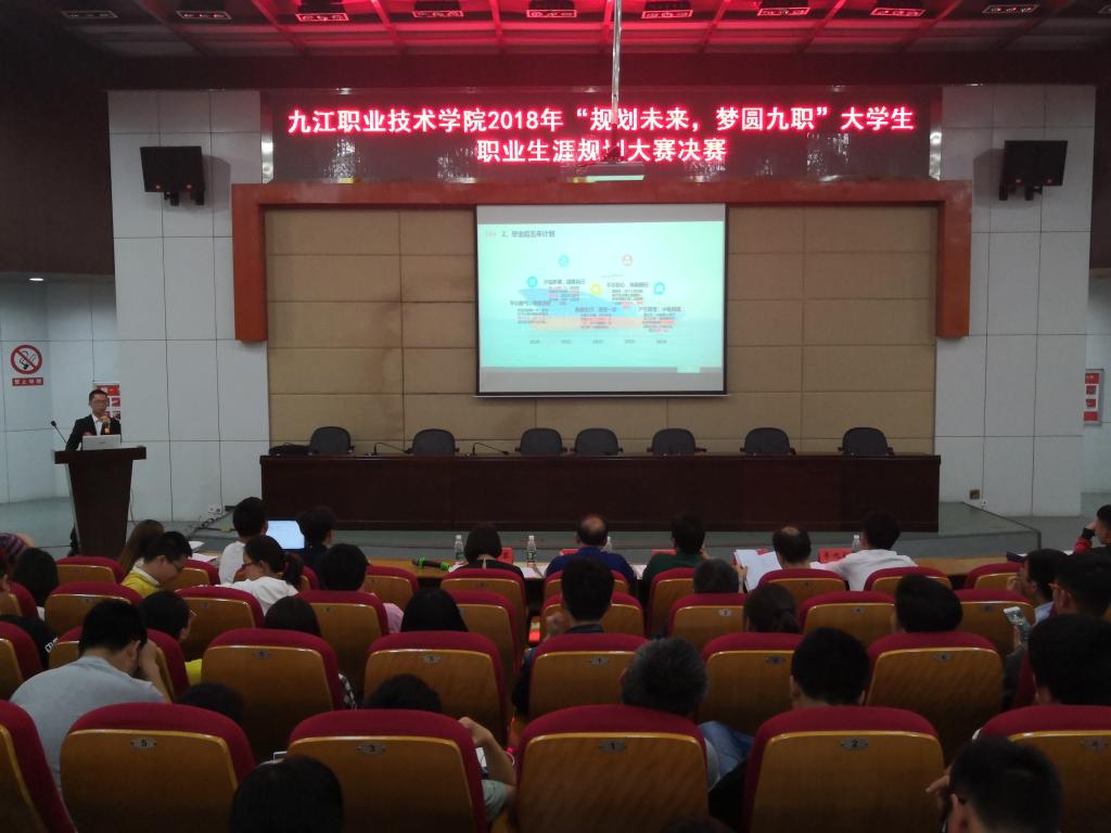 九江职院新闻网讯(招生就业处 袁春香)5月10日晚七点,我校2018年“规划未来,梦圆九职”大学生职业生涯规划大赛决赛在十里校区四号学术厅拉开帷幕,九江联盛集团人力资源中心高级经理田玉琴、九江钜丰科技有限公司总监曹旭明、宣传部部长聂世平、工程训练中心主任李正生、创新创业学院主任张志成担任本次决赛评委。此次大赛由招生就业处、学生工作处主办,大学生就业协会承办。共有来自各二级学院近400名师生代表到场观看了比赛。