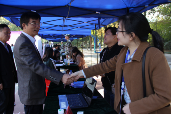 九江职院新闻网讯(招生就业处 袁春香 校企合作中心 刘慧宇)10月27日,我校2019届毕业生江西国防科技工业职业教育集团、校友企业专场招聘会在十里校区1号篮球场举行。副校长汪永根、纪委书记殷锡武到现场指导,招生就业处、校企合作中心、各二级学院领导到招聘会现场。本次招聘会共引进江西省军工控股集团有限公司、江铃汽车股份有限公司、九江恒通自动控制器有限公司等近40家职教集团、校友企业,共吸引3600余名毕业生参加。