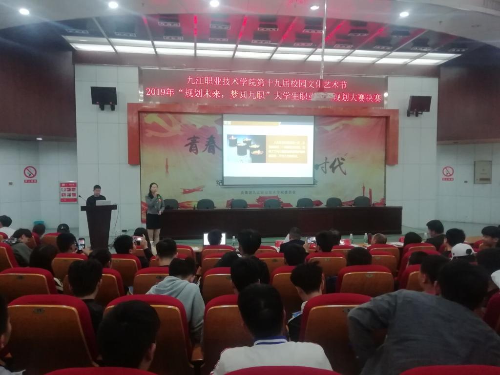 九江职院新闻网讯(招生就业处 袁春香 陈慧婷)5月7日下午15点,我校第十九届校园文化艺术节2019“规划未来,梦圆九职”大学生职业生涯规划大赛决赛在十里校区四号学术厅拉开帷幕。后勤管理处、后勤服务集团党总支书记方骅,我校94级计量与测试专业优秀毕业生校友、中船九江海洋装备集团有限公司综合管理部副主任罗颖,九江市人才交流服务中心副主任张良,志高空调(九江)有限公司副总经理万猛,濂溪区青创团工委委员、九江小媒婆网络科技有限公司总经理柯皓明担任本次决赛评委。此次大赛由招生就业处、学生工作处主办,大学生就业协会承办。共有来自各二级学院近400名师生代表到场观看了比赛。