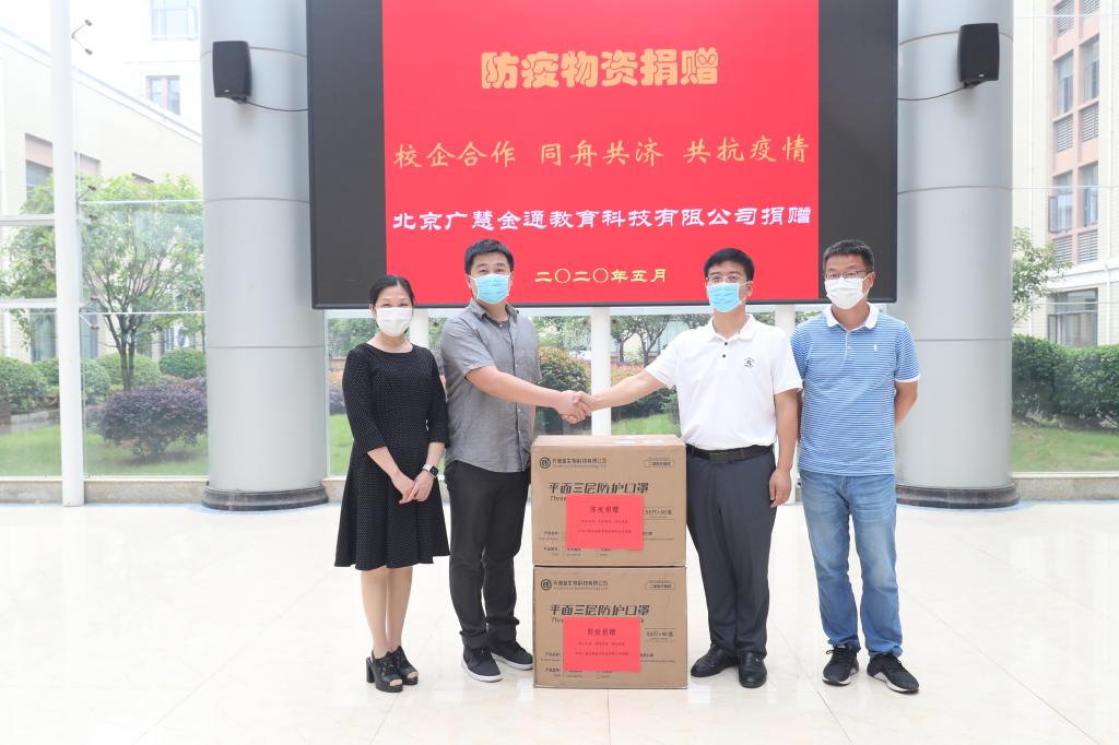 汪永根副校长代表学校向金通公司的爱心义举表示衷心感谢。他说,学校目前正处于复学的关键时期,疫情防控任务艰巨,金通公司的无私捐赠彰显了企业的社会责任与担当,希望未来与金通公司保持更加紧密而深入的合作,学校也将一如既往向财会金融学院“金通”空乘专业提供有力支持。