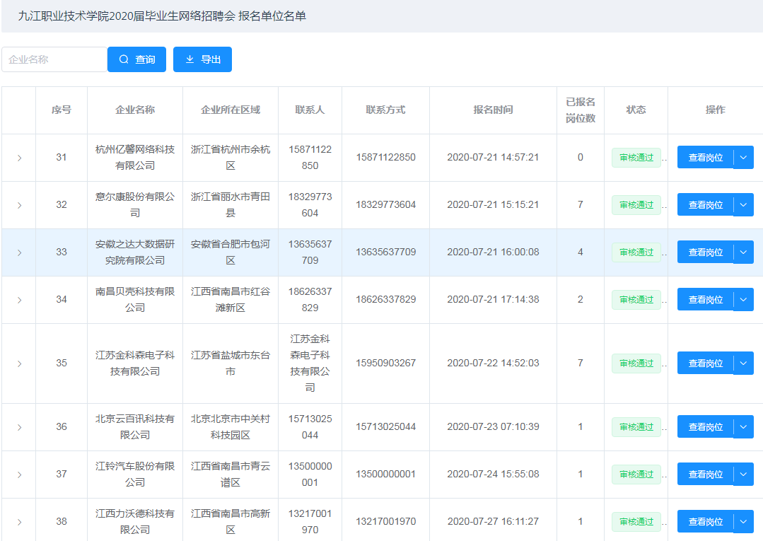 九江职院新闻网讯(招生就业处)为贯彻落实《教育部办公厅关于为2020届离校未就业高校毕业生提供不断线就业服务的通知》、省教育厅《关于近期就业工作》等文件精神,持续性为毕业生提供就业服务,7月30日至8月2日,我校通过就业汇人才服务网,举办了九江职业技术学院“离校不离心,服务不断线”2020届离校未就业毕业生首场线上双选会。