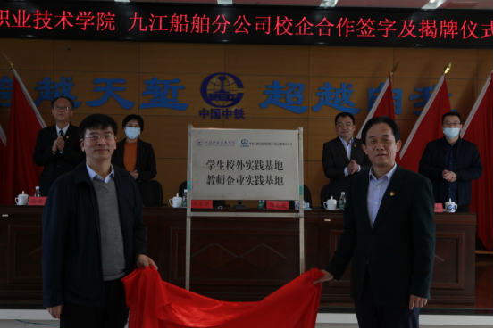 仪式上,汪永根副校长、刘国超总经理共同签署了校企合作协议,并为“九江职业技术学院学生校外实践基地”“九江职业技术学院教师企业实践基地”“九江职业技术学院企业科技工作站”“九江职业技术学院教师企业流动站”“九江职业技术学院双师型教师培养培训基地”揭牌。仪式之后,双方进行了座谈,就“校企合作”协议中的校企合作班落地、科研合作等条款进行深入讨论,并交换了意见。