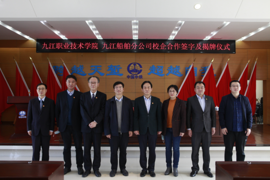 九江职院新闻网讯(船舶工程学院)4月9日上午,我校与中铁大桥局集团有限公司九江船舶分公司举行校企合作签约暨揭牌仪式。副校长汪永根,中铁大桥局集团有限公司九江船舶分公司党工委书记陈春华、总经理刘国超、党工委副书记徐建宁出席,学校及公司相关负责人参加。
