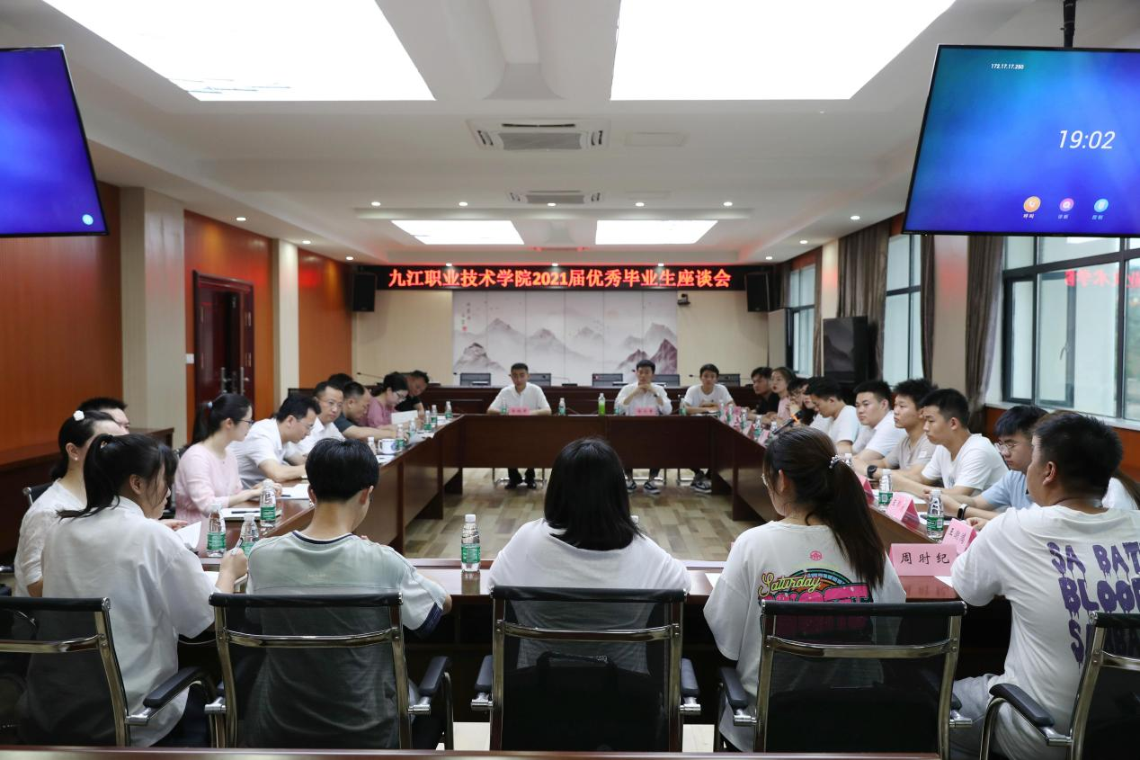 九江职院新闻网讯(校团委 李晶)6月1日晚,我校2021届优秀毕业生代表座谈会在濂溪校区办公楼703会议室召开。副校长卢致俊出席会议,相关职能部门负责人及优秀毕业生代表参加座谈。