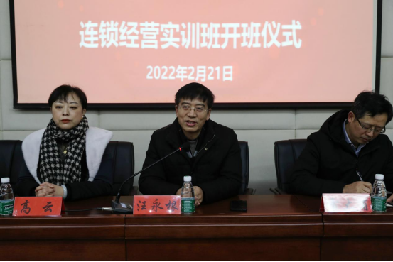 开班仪式上,汪永根首先对京东校园馆进驻校企共建的数字经济产业学院表示热烈欢迎!并全面回顾总结了四年来学校与京东全产业链深度合作的成效与经验,对新建的校园馆项目明确了高起点谋划、高水平建设、高质量产出工作要求。同时提出三点希望:一是希望校园馆运营团队,充分发挥企业资源优势,将校园馆项目打造成“九职·京东”校企合作的亮点;二是希望经管学院积极协助校园馆项目团队,将京东正道成功的价值观、先进的经营理念和标准化的服务流程全方位植入到教育教学中,落实校企双元育人;三是希望参训学生借助校园馆这个产教融合平台,实现理论教学与生产实践有机结合,磨砺专业技能、锤炼优秀品质、助力成长成才。