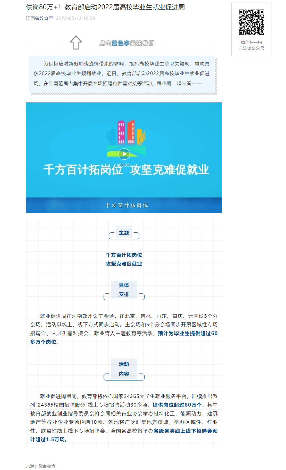 供岗80万+!教育部启动2022届高校毕业生就业促进周