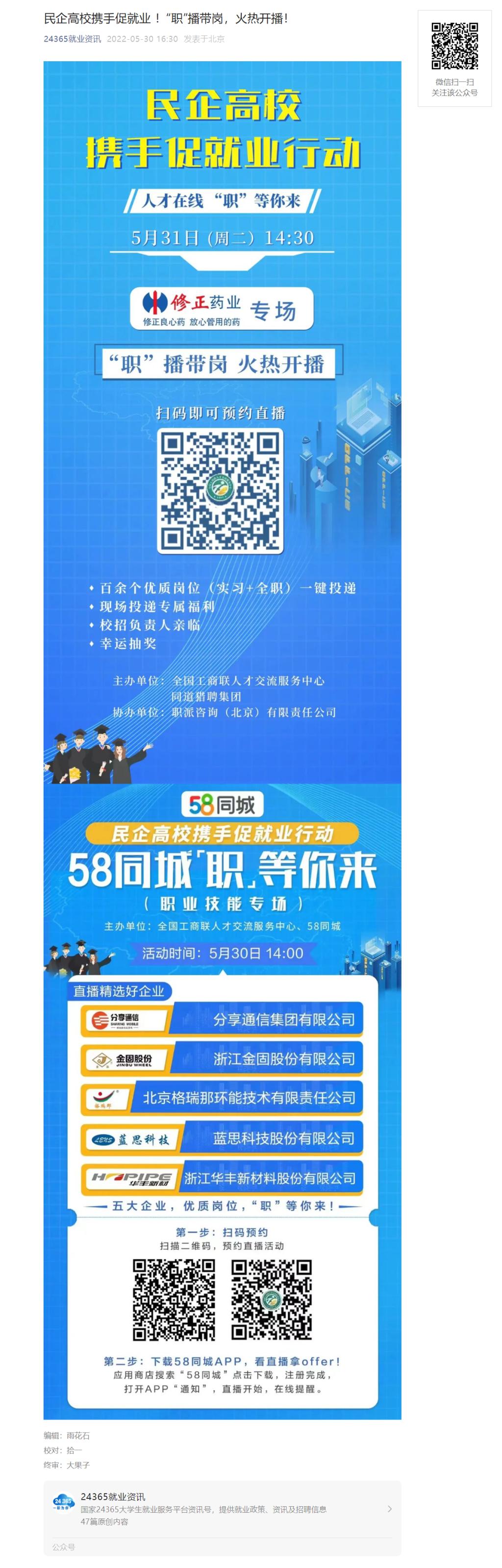 民企高校携手促就业 !“职”播带岗,火热开播!