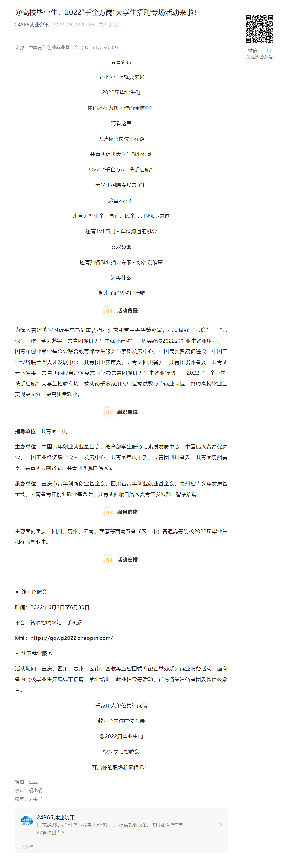 @高校毕业生,2022“千企万岗”大学生招聘专场活动来啦!