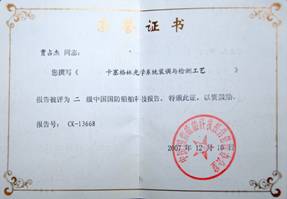 先后承担并出色的完成了潜望镜、精密光电设备的部装及总装调试工作,解决了诸多生产难题,在我国海军新一轮军事变革中为光电装备现代化作出了突出贡献。