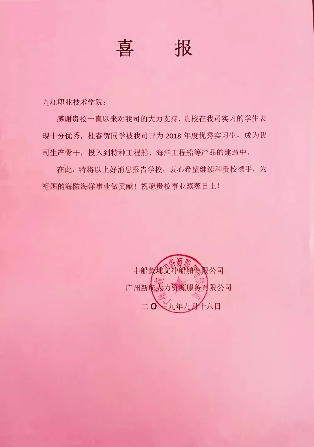喜报|校友荣获企业优秀实习生称号