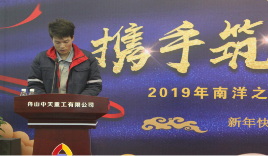 张晨,男,1998年6月出生,共青团员,江西抚州人,九江职业技术学院2019届船舶工程技术专业毕业生,2018年10月应聘到舟山中天重工有限公司担任船体见习主管。在校期间,先后担任班长,学生会干事,就业部长等职,曾多次获得优秀学生干部、优秀团干部、优秀毕业生、校级奖学金等荣誉。工作期间,被公司评为2019年度“优秀新人”,于2018年公司年会上作为优秀实习生代表发言,并于2019年公司年会上作为获奖优秀新人代表发言。2019年10月受公司派遣返回母校招聘毕业生,效果显著。