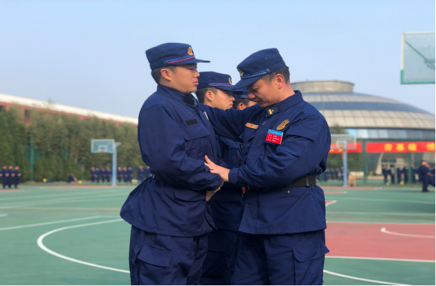 2019年寒冬,他穿上了全新的火焰蓝。他成为了一名准消防员,继续以另一种特殊的身份守护着千家万户的幸福安康。