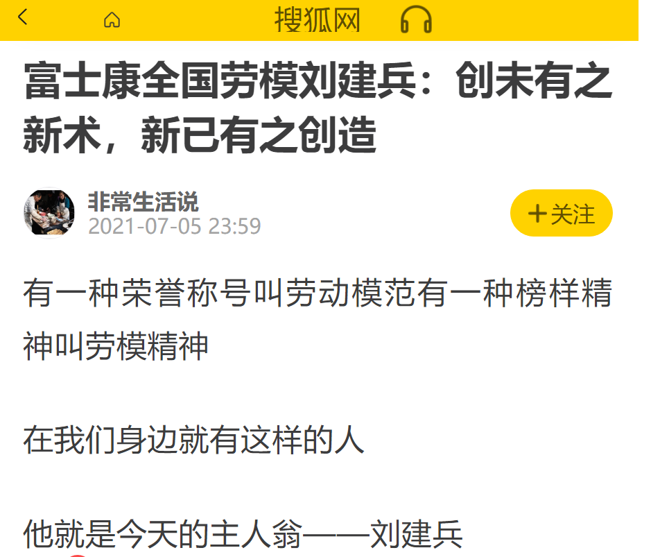 富士康全国劳模刘建兵:创未有之新术,新已有之创造