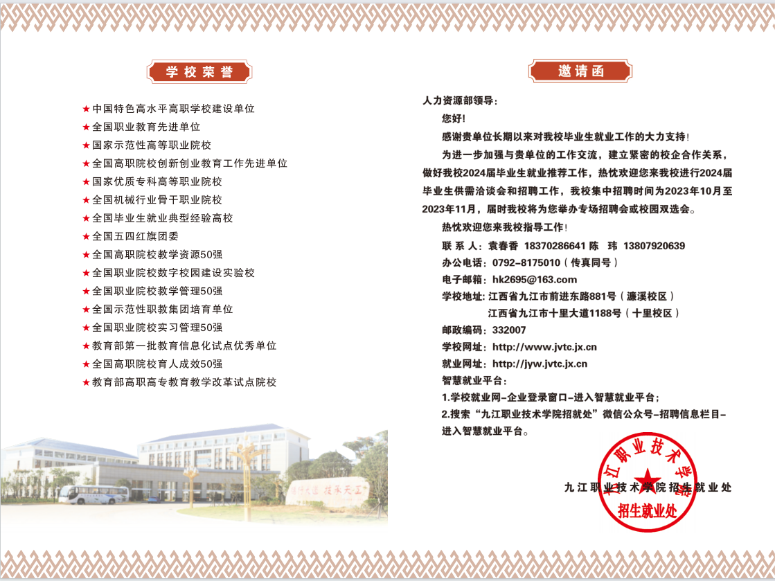 九江职业技术学院2024届毕业生就业邀请函(含专业人数)