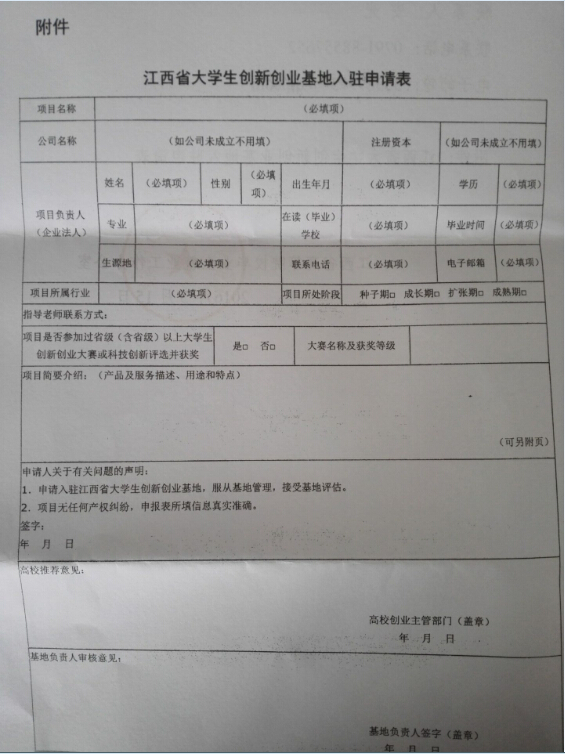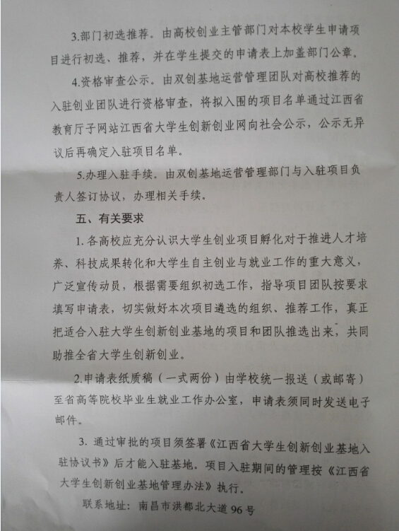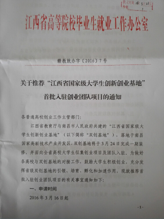 关于推荐“江西省国家级大学生创新创业基地”首批入驻创业团队项目的通知