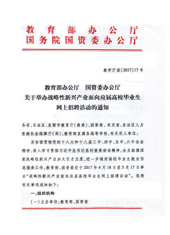 关于举办2017年战略性新兴产业面向应届高校毕业生网上招聘活动的通知