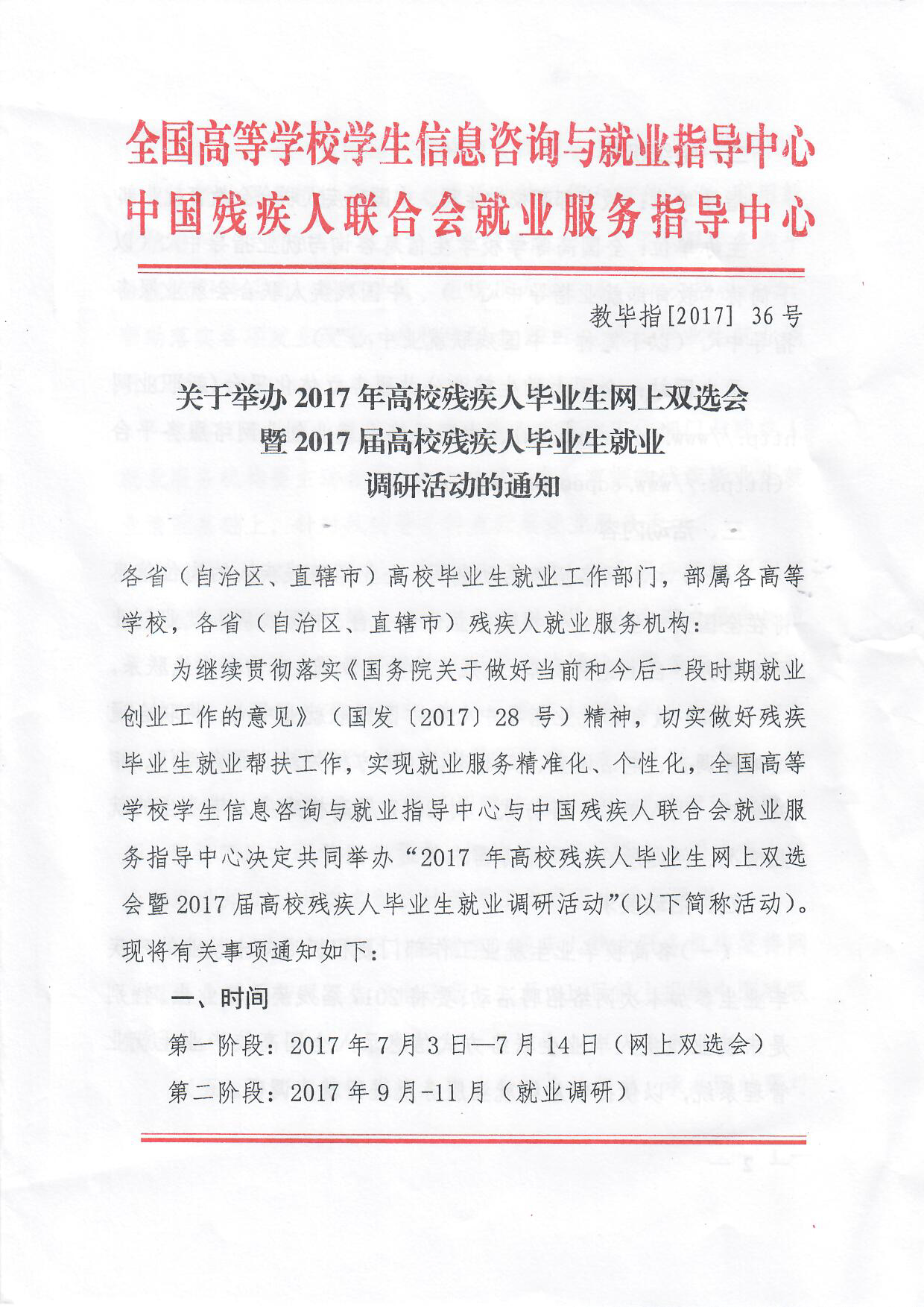 关于举办2017年高校残疾人毕业生网上双选会的通知