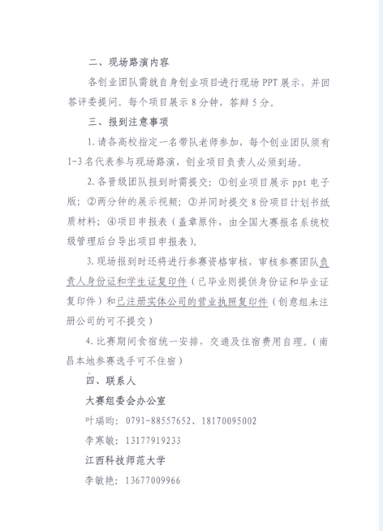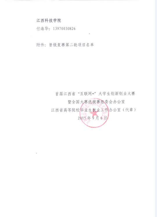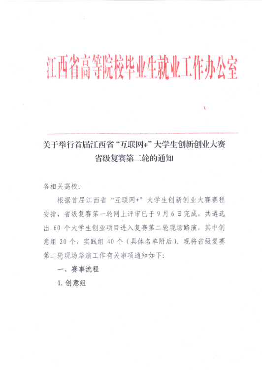 关于举行首届江西省“互联网+”大学生创新创业大赛省级复赛第二轮的通知