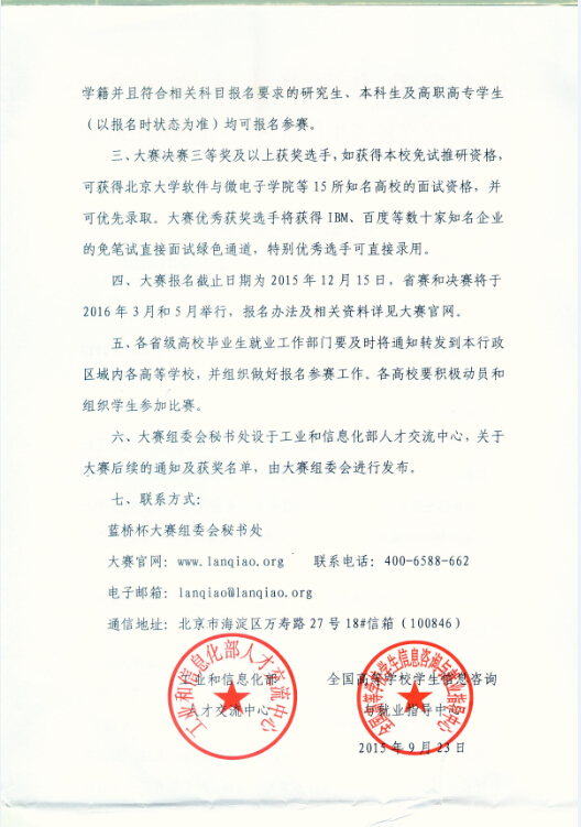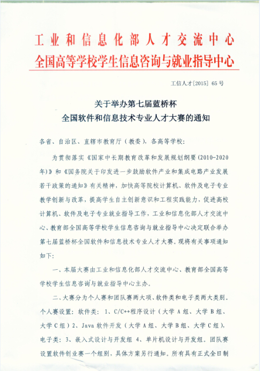 关于举办第七届蓝桥杯全国软件和信息技术专业人才大赛的通知
