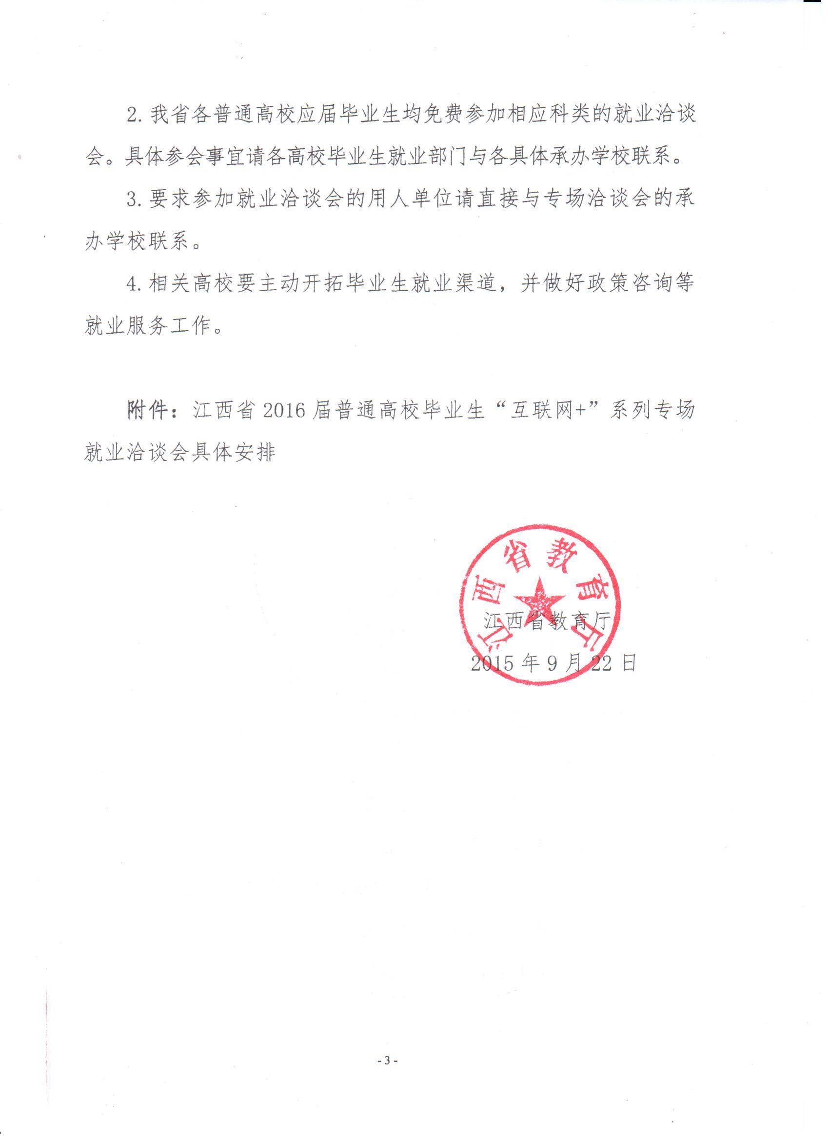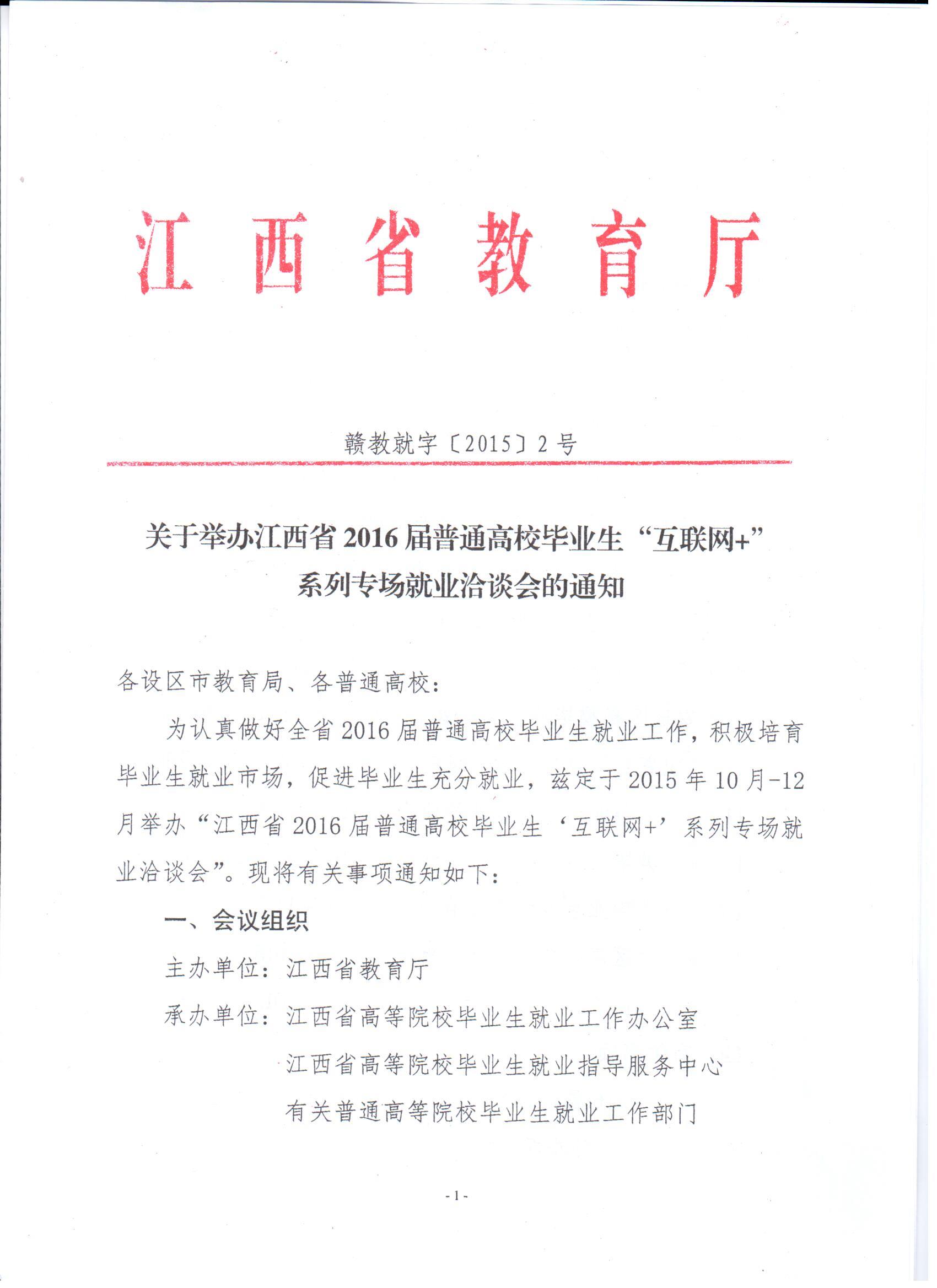 关于举办江西省2016届普通高校毕业生“互联网+”系列专场就业洽谈会的通知