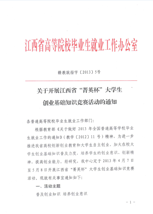关于开展江西省“箐英杯”大学生创业基础知识竞赛活动的通知