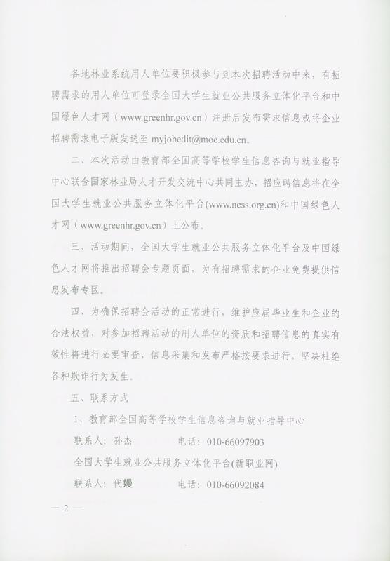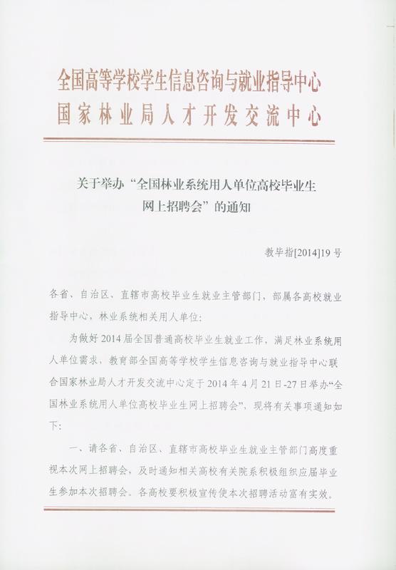 关于举办“全国林业系统用人单位高校毕业生网上招聘会”的通知