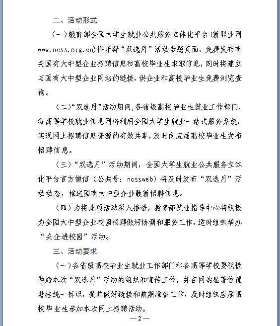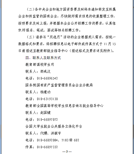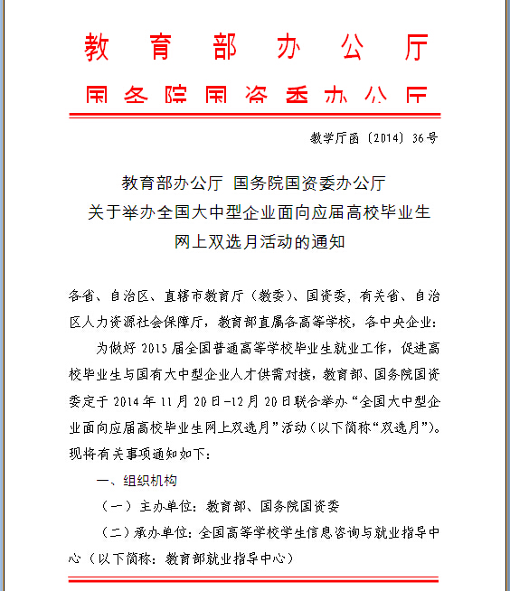 教育部办公厅 国务院国资委办公厅 关于举办全国大中型企业面向应届高校毕业生网上双选月活动的通知