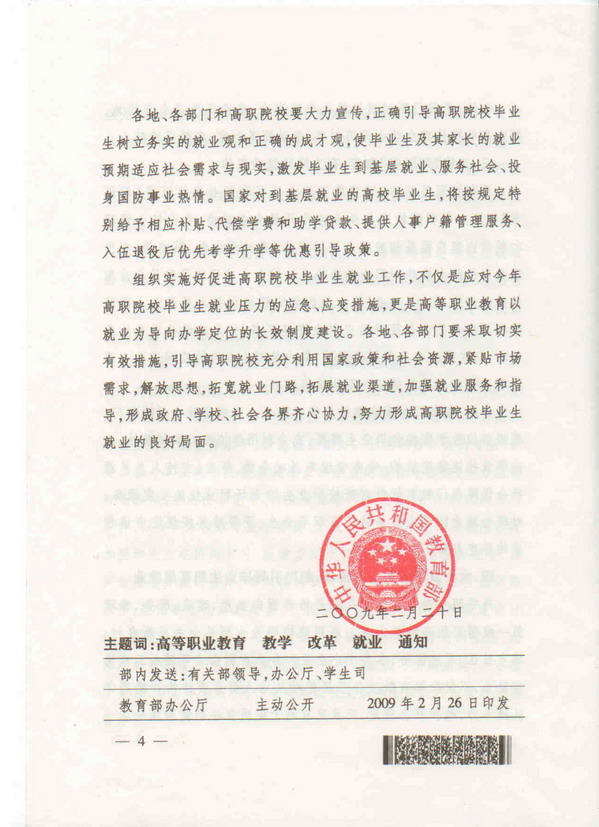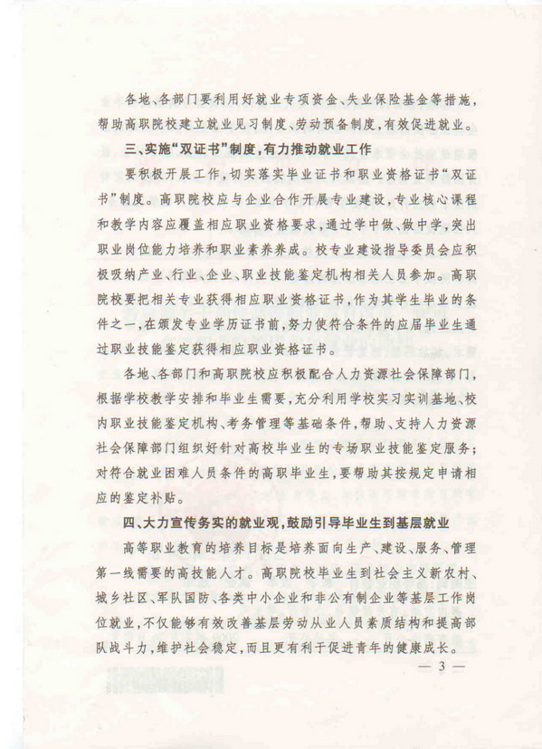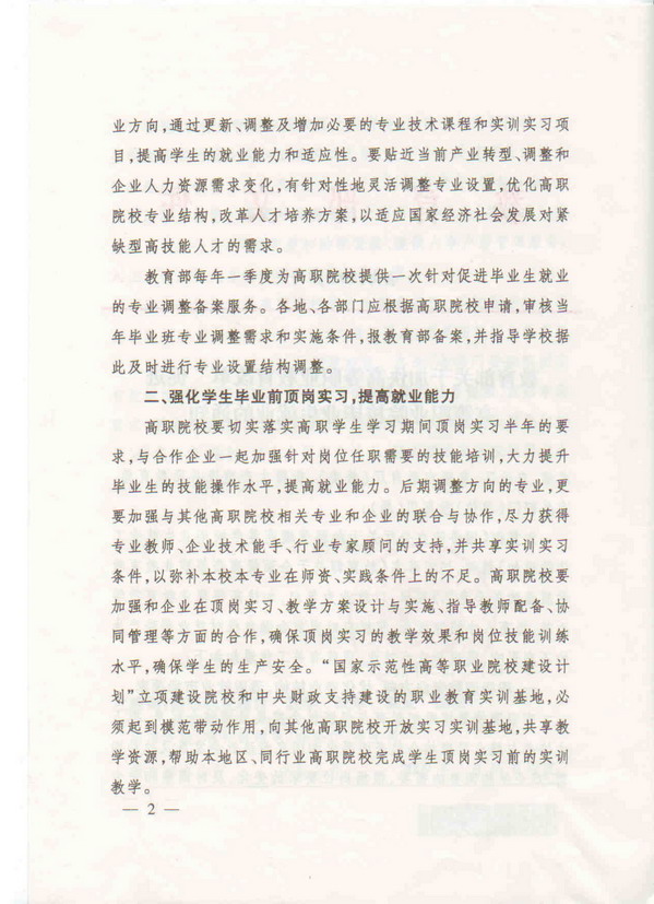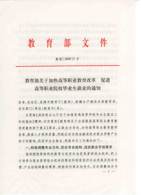 教育部关于加快高等职业教育改革 促进高等职业院校毕业生就业的通知