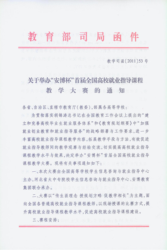 关于举办“安博杯”首届全国高校就业指导课程教学大赛的通知