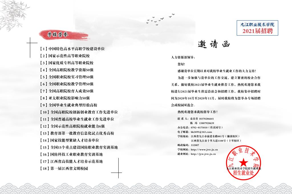 九江职业技术学院2021届毕业生就业邀请函(含毕业生专业、人数)