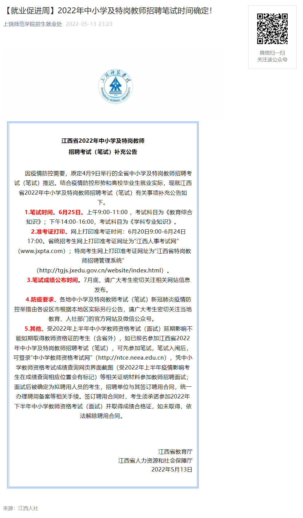 【就业促进周】2022年中小学及特岗教师招聘笔试时间确定!