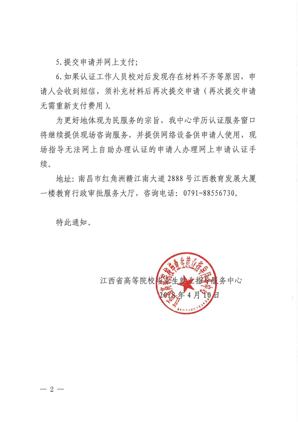 江西省高等院校毕业生就业指导服务中心关于开通中国高等教育学历认证网上申请的通知