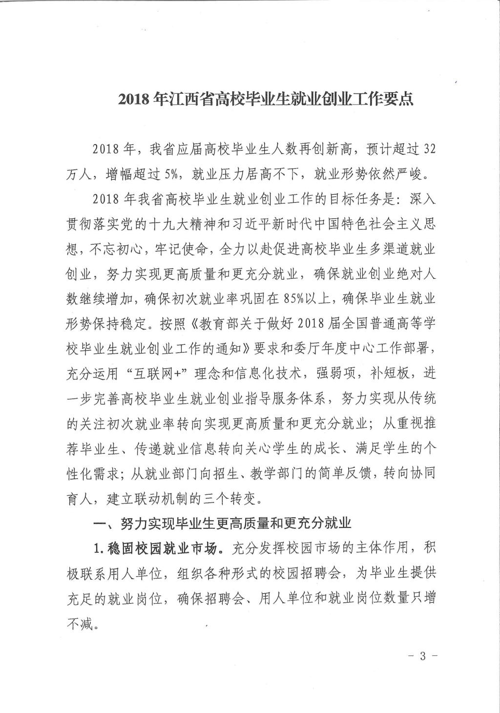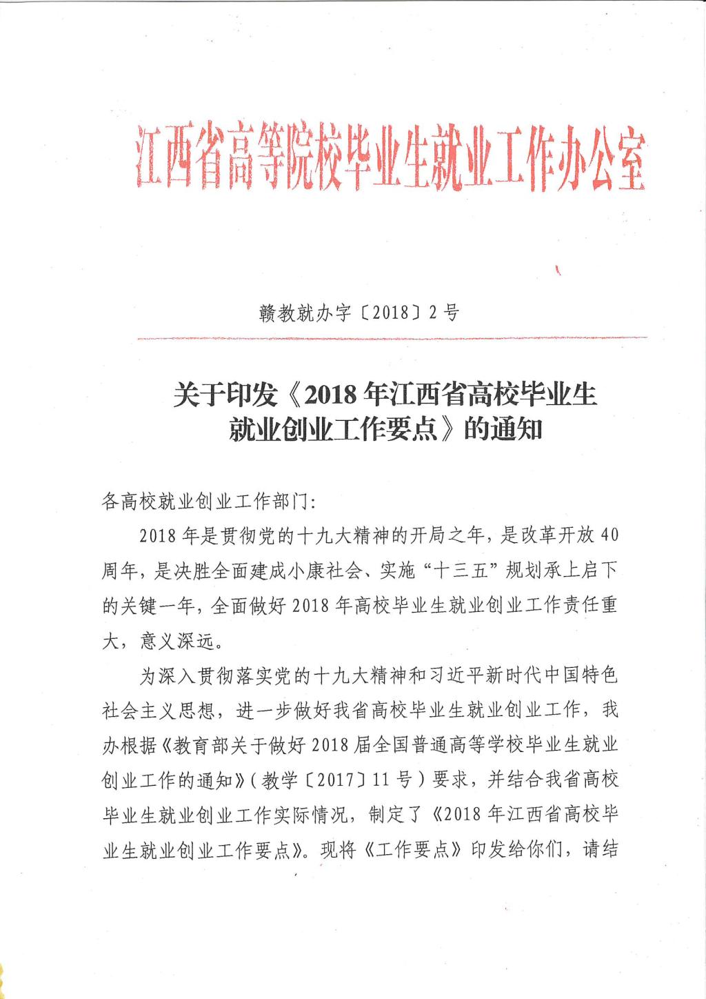 关于印发《2018年江西省高校毕业生就业创业工作要点》的通知