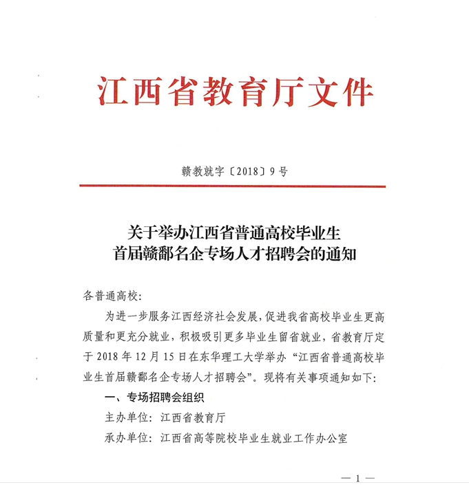 关于举办江西省普通高校毕业生首届赣鄱名企专场人才招聘会的通知