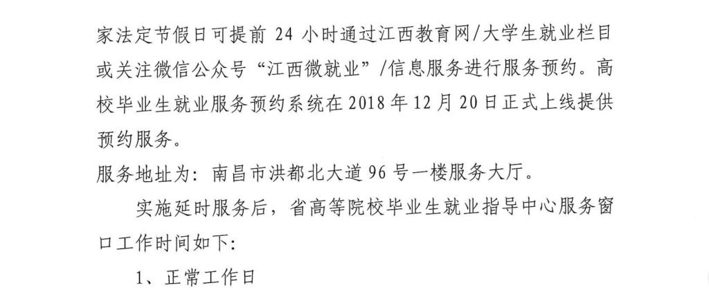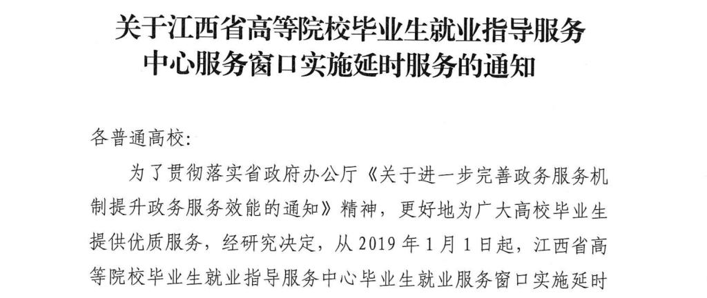 关于江西省高等院校毕业生就业指导服务 中心服务窗口实施延时服务的通知