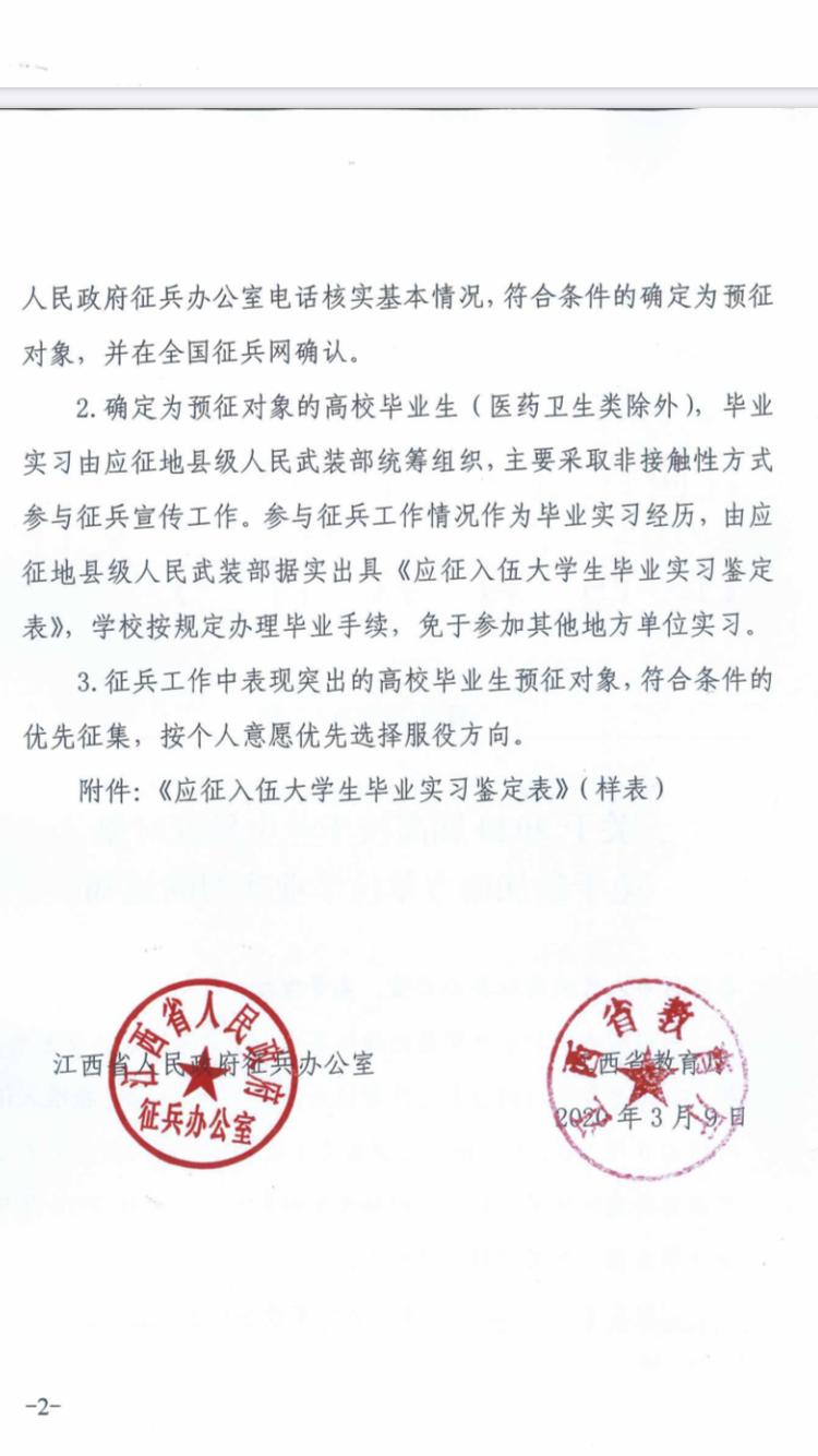 关于2020届高校毕业生预征对象免于参加地方单位毕业实习的通知