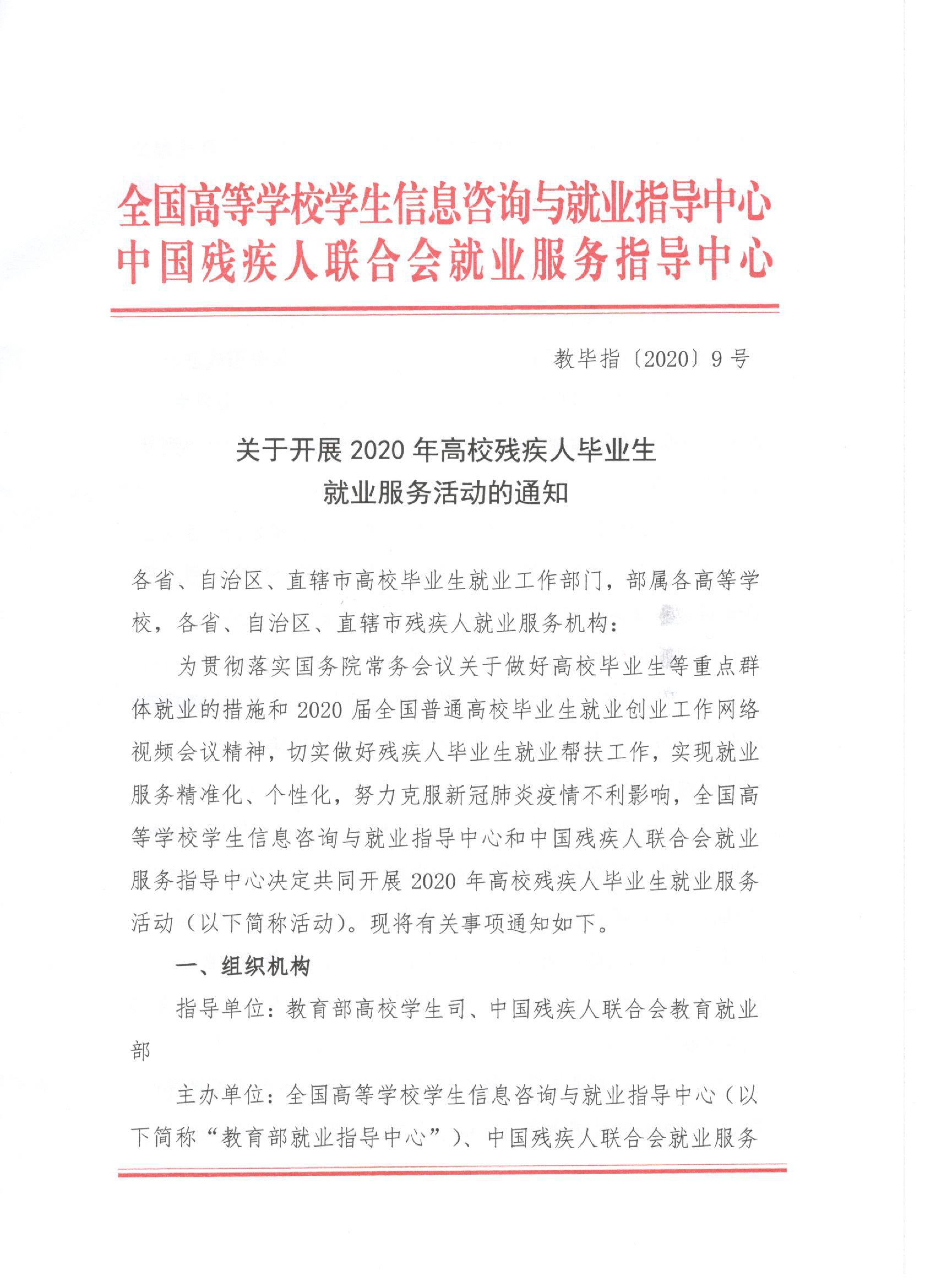 关于开展2020年高校残疾人毕业生就业服务活动的通知