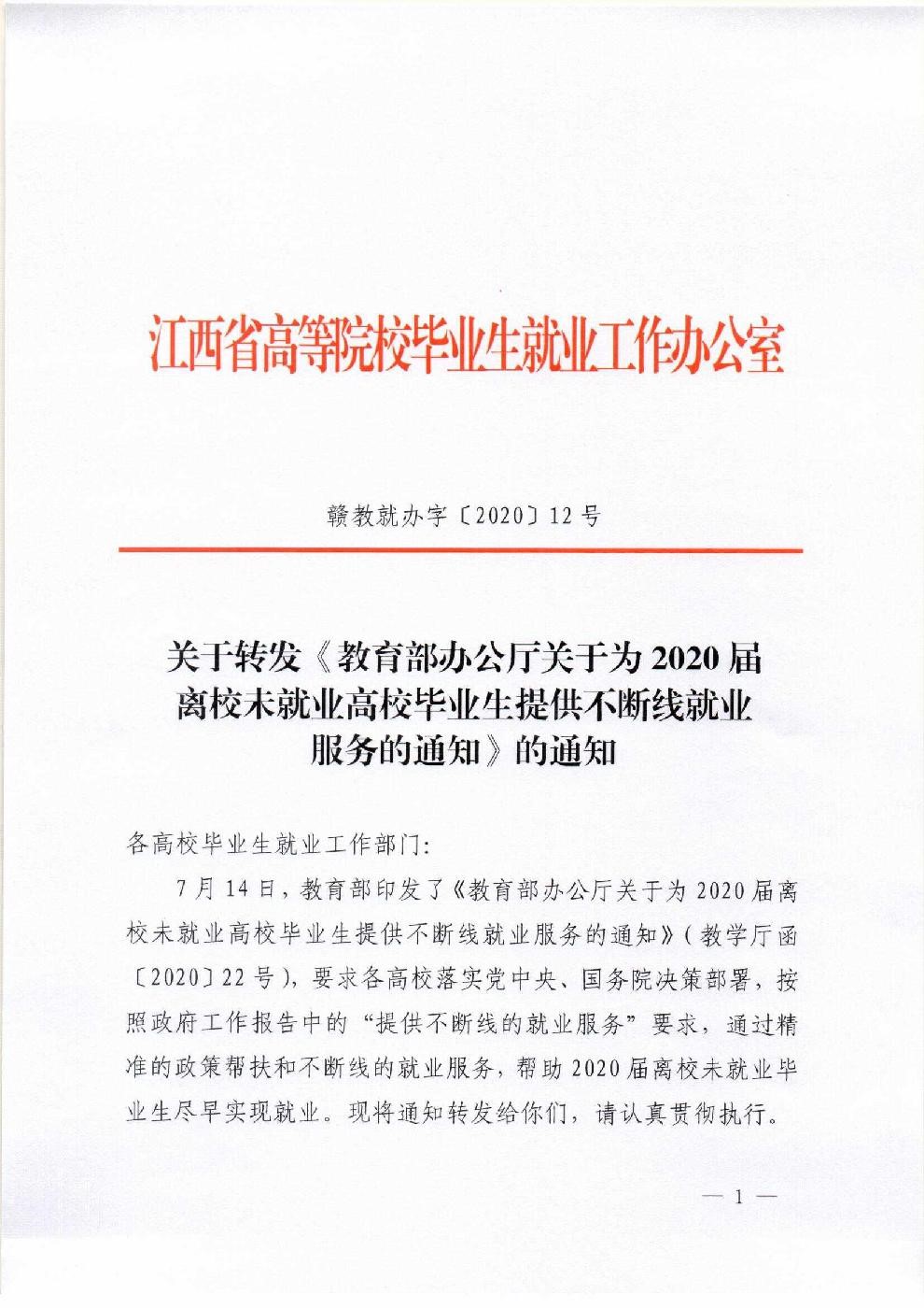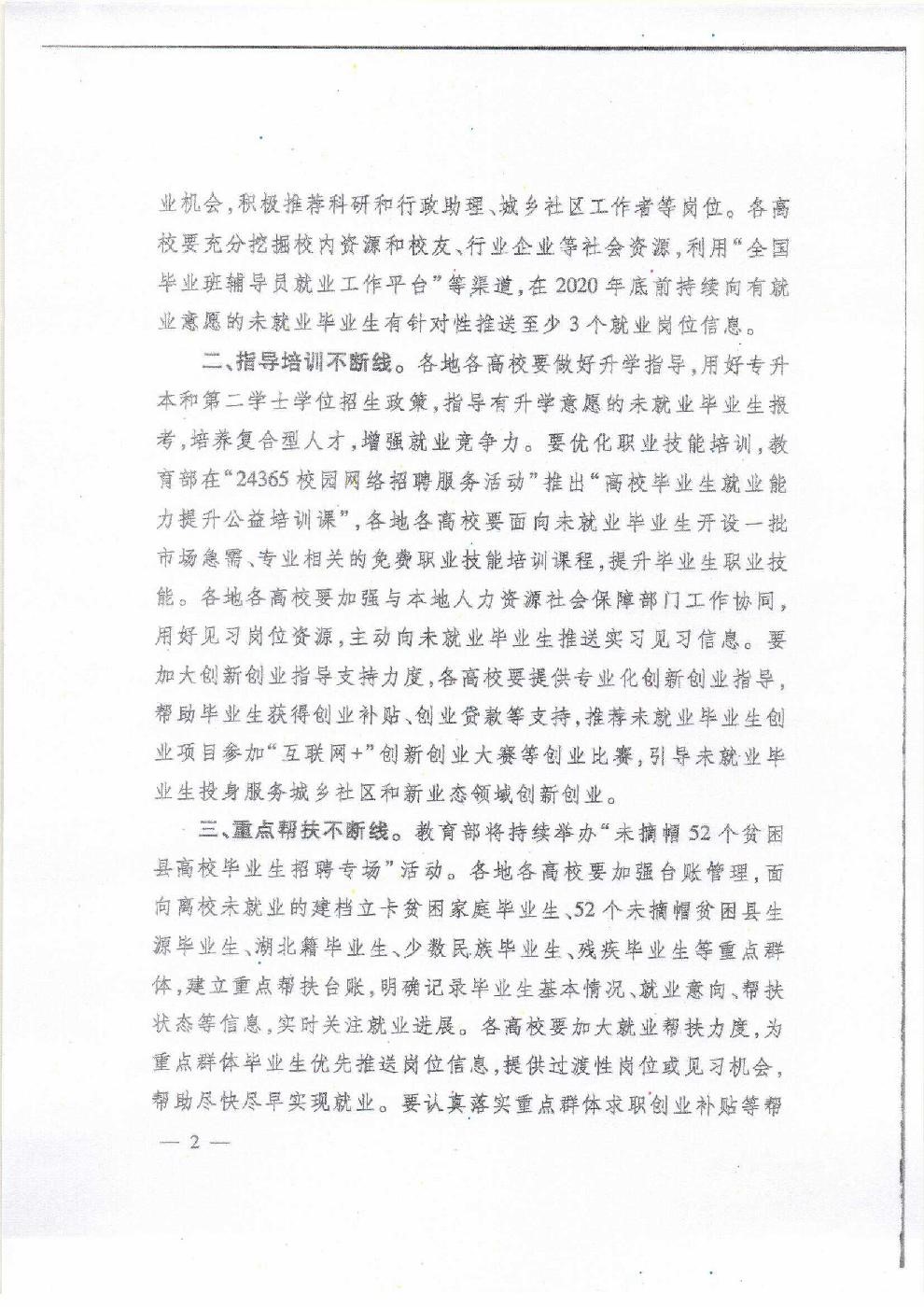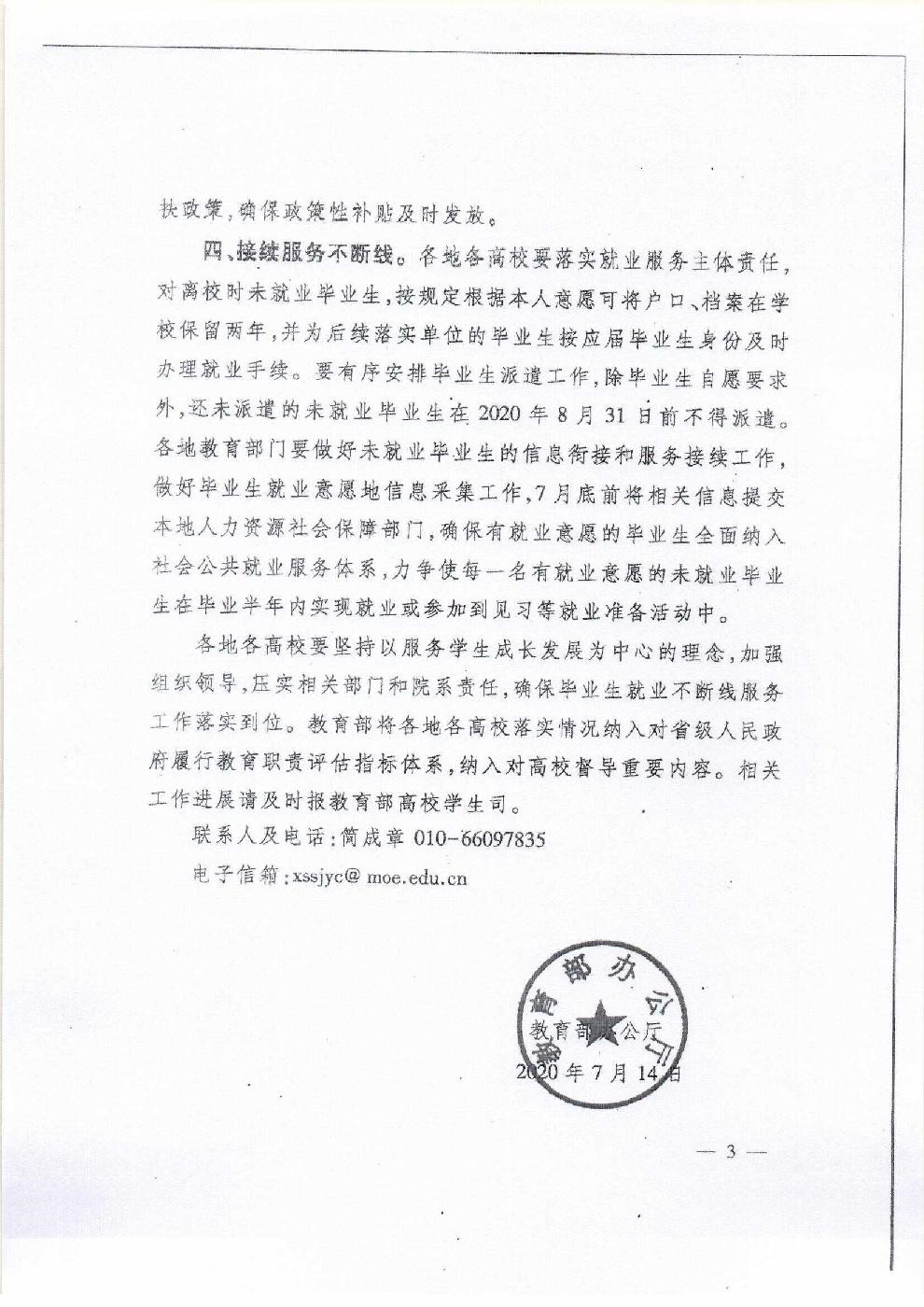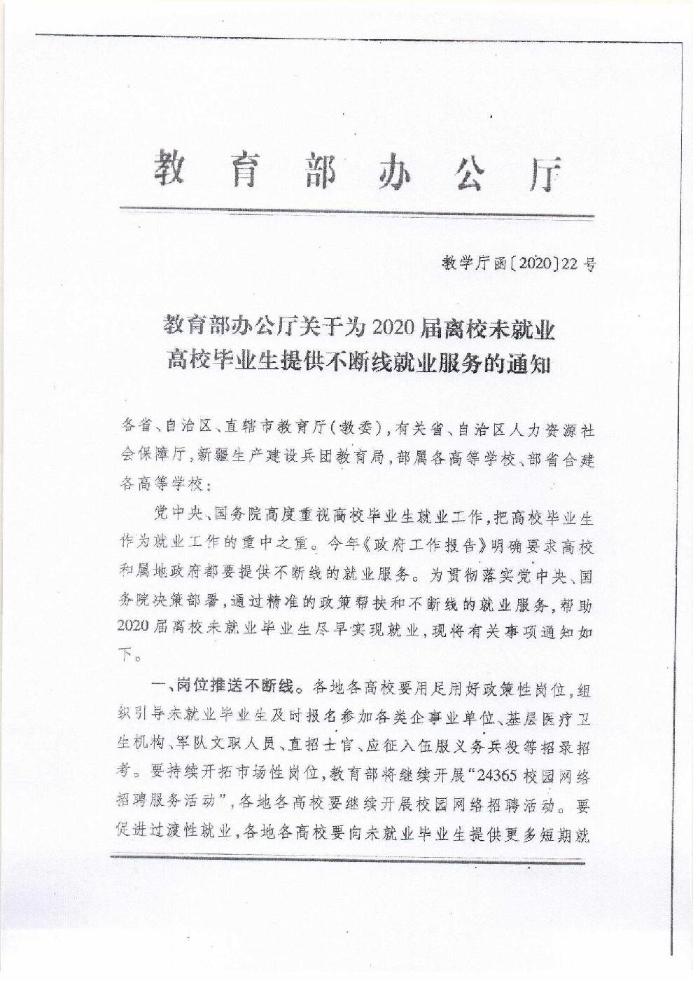教育部办公厅关于为2020届离校未就业高校毕业生提不断线就业服务的通知