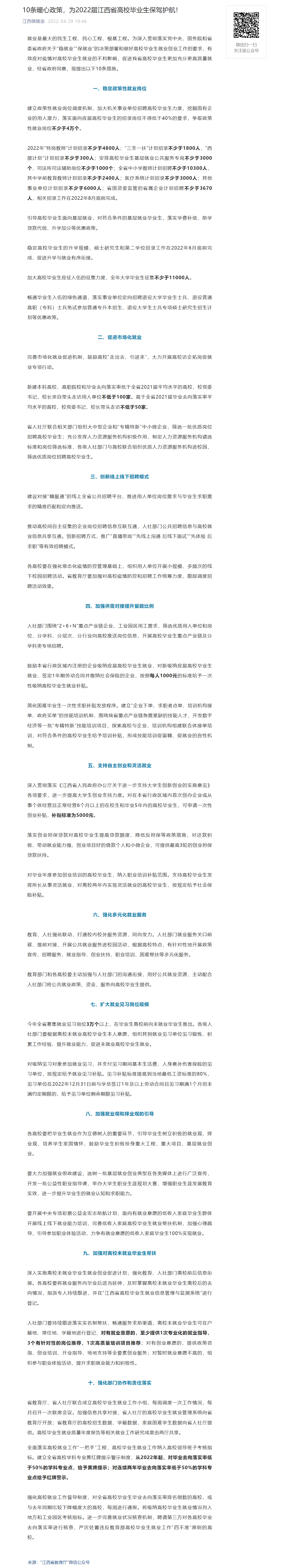 10条暖心政策,为2022届江西省高校毕业生保驾护航!