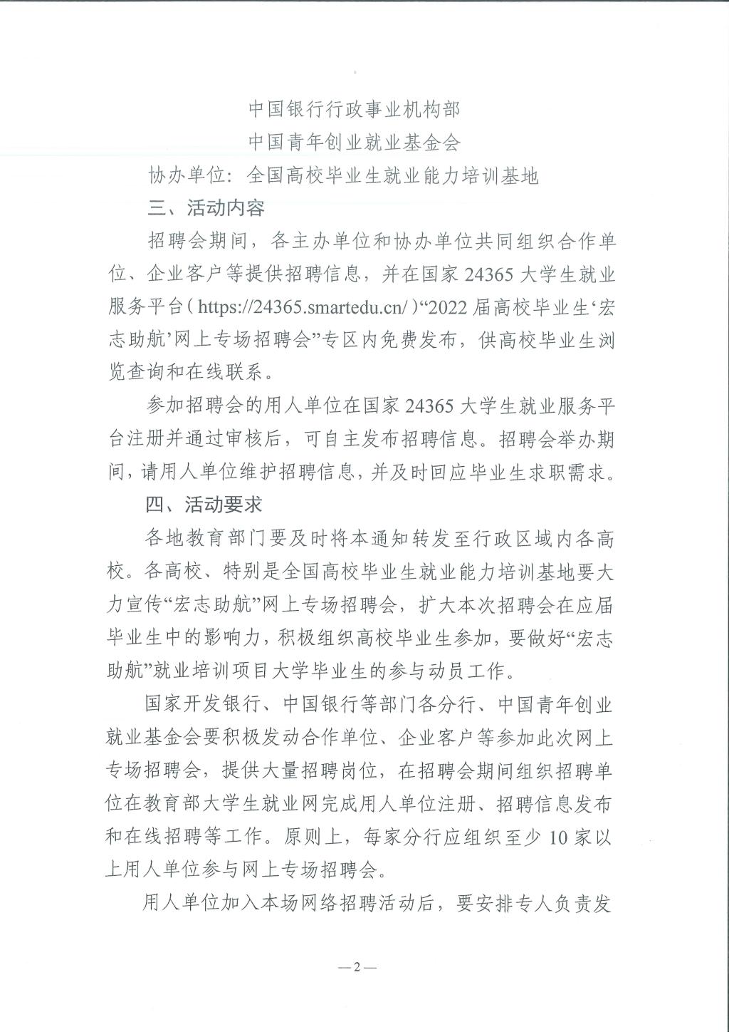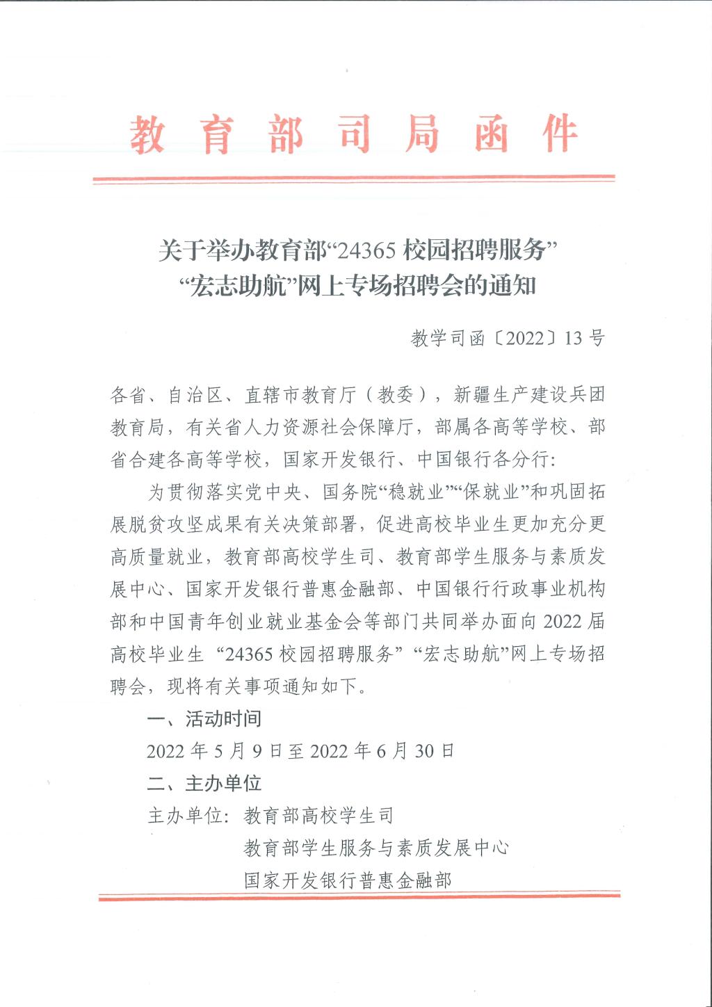 关于举办教育部“24365校园招聘服务”“宏志助航”网上专场招聘会的通知