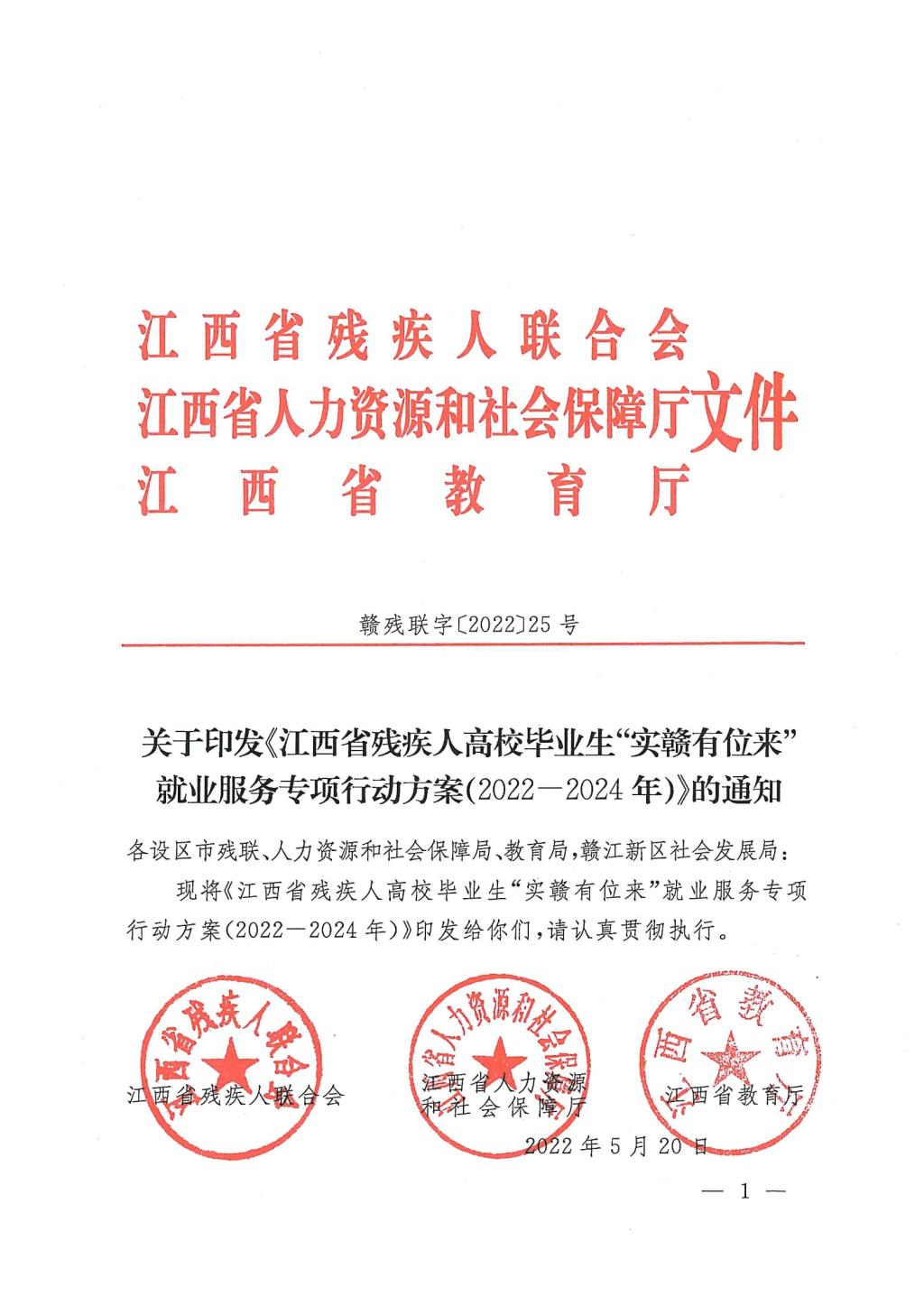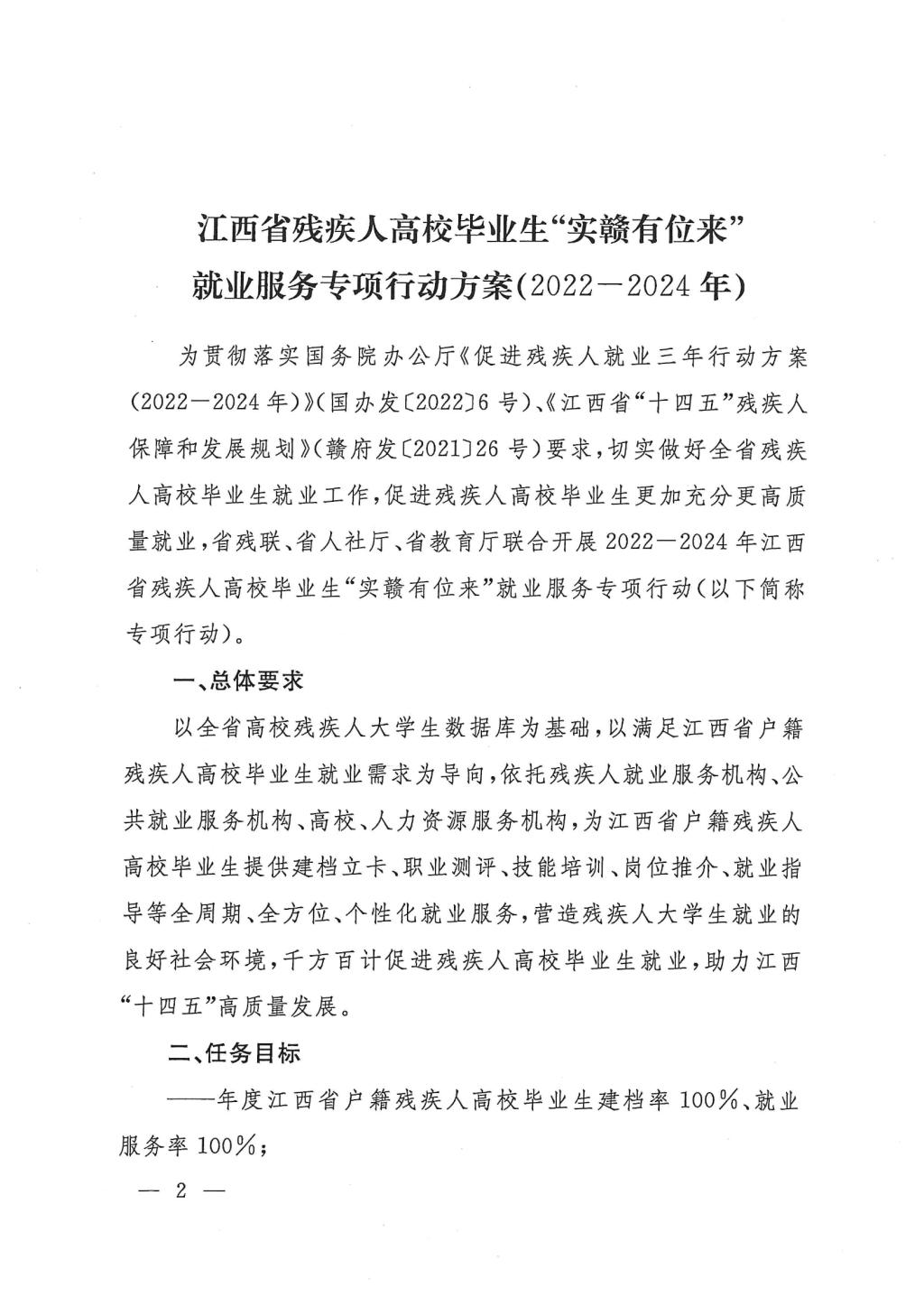 关于印发<<江西省残疾人高校毕业生"实赣有位来"就业服务专项行动方案(2022年-2024年)>>的通知