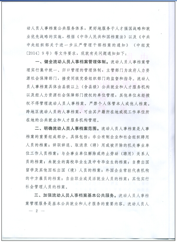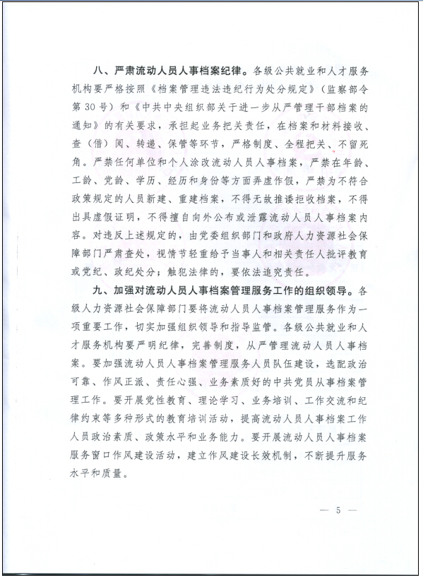 中共中央组织部、人力资源社会保障部、等五部门关于进一步加强流动人员人事档案管理服务工作的通知