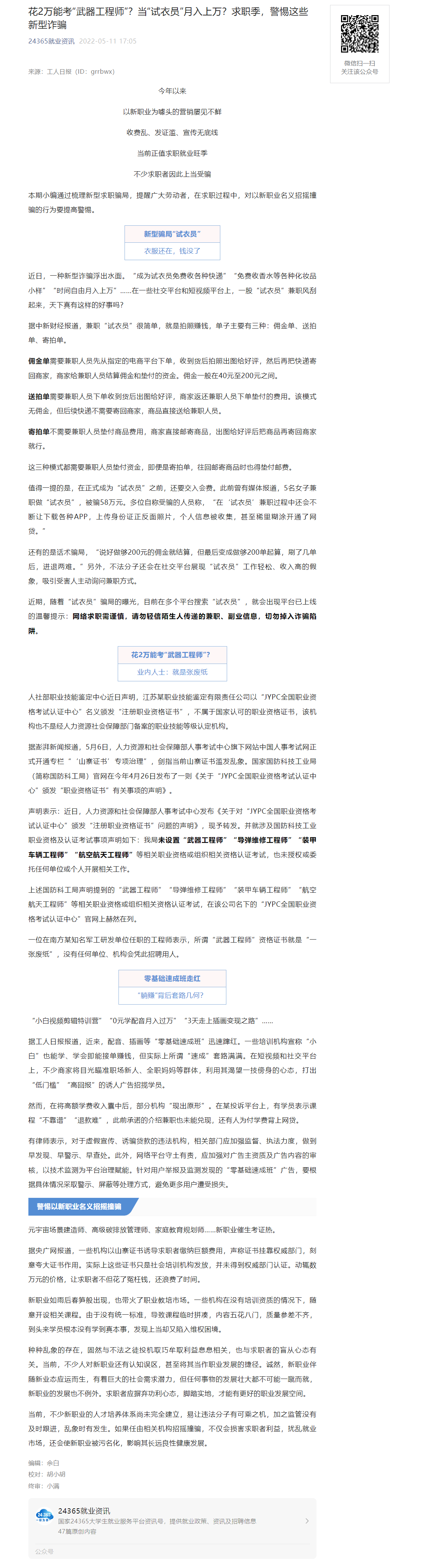 花2万能考“武器工程师”?当“试衣员”月入上万?求职季,警惕这些新型诈骗