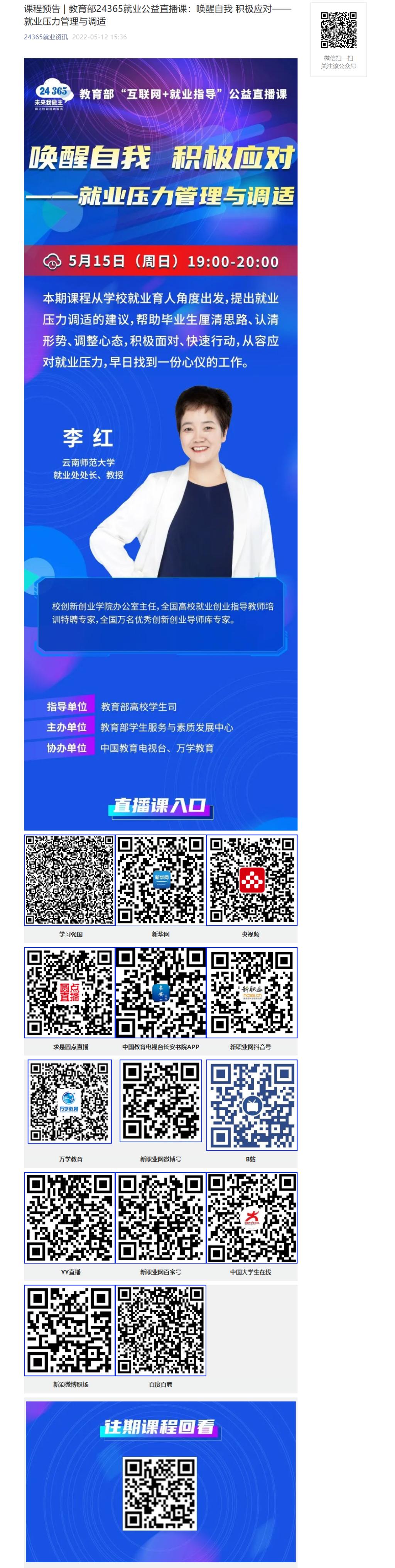 课程预告 | 教育部24365就业公益直播课:唤醒自我 积极应对——就业压力管理与调适